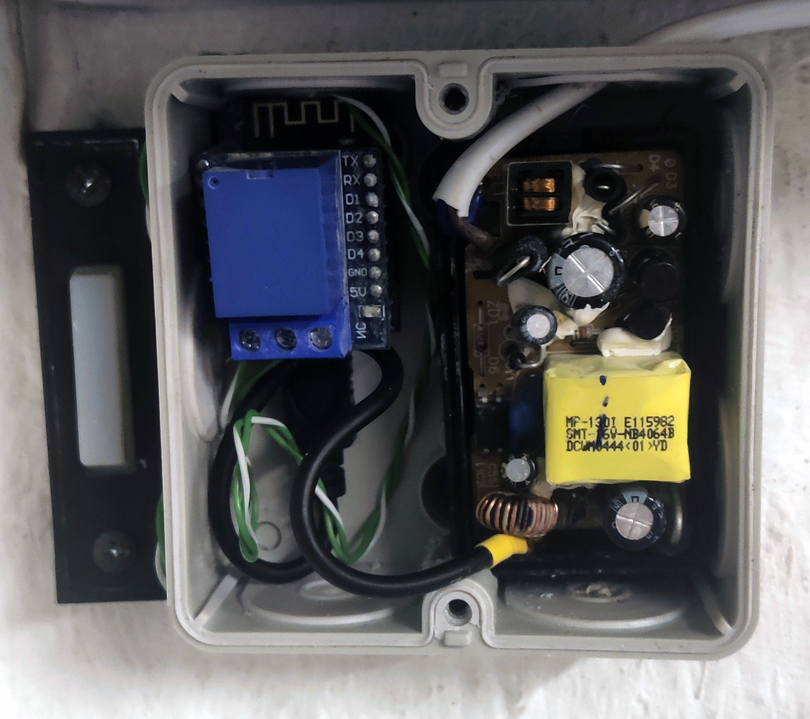 Mit Hilfe eines ESP8266-Mikrokontrollers, einen Relaismodul von AZ-Delivery, einem SNZB-04 Türsensor zur Abfrage des Status des Garagentors und einem kanibalisierten alten Telefon-Netzteils ließ sich die Lösung leicht realisieren und mit geringen Kosten realisieren. Der Komfortgewinn ist enorm.